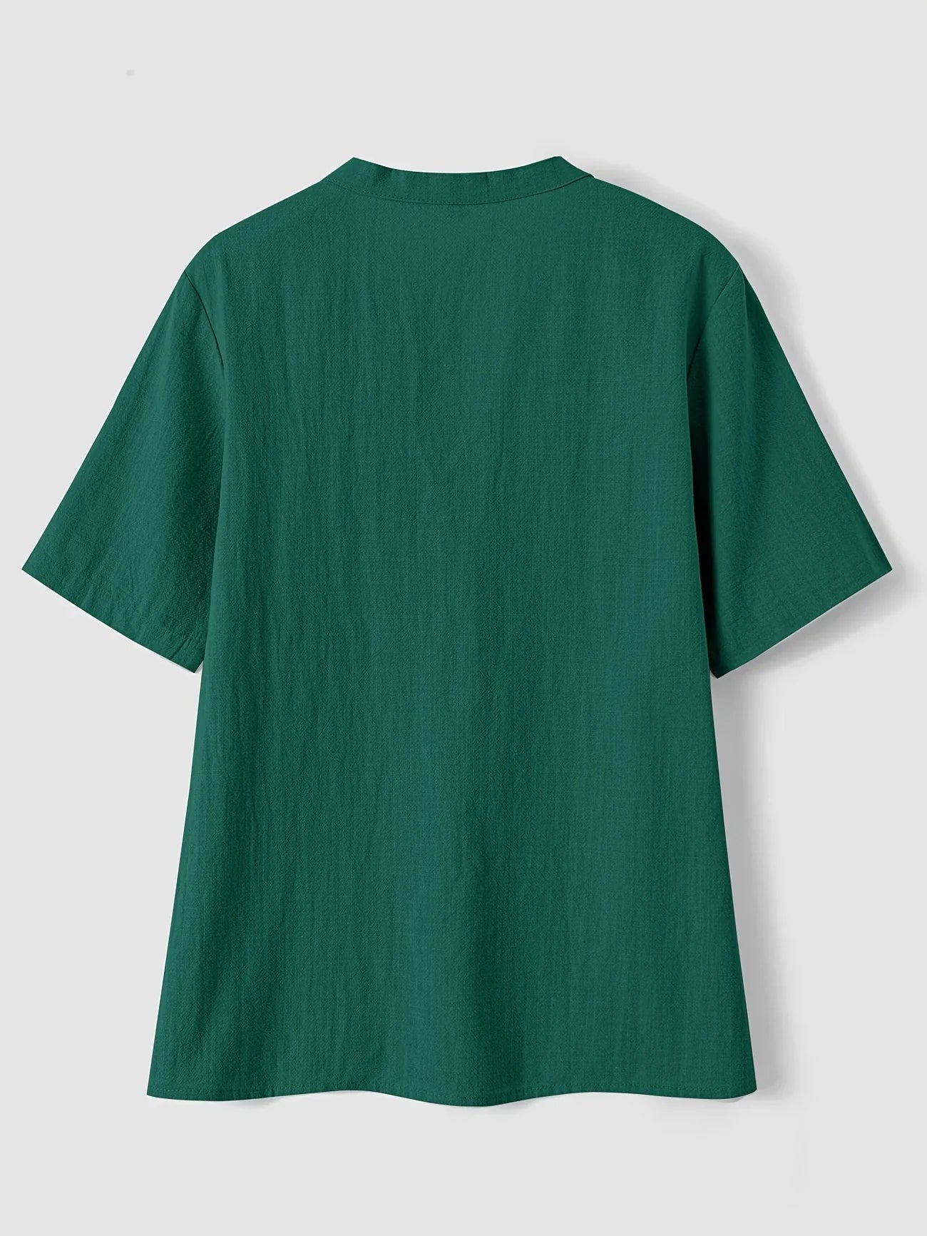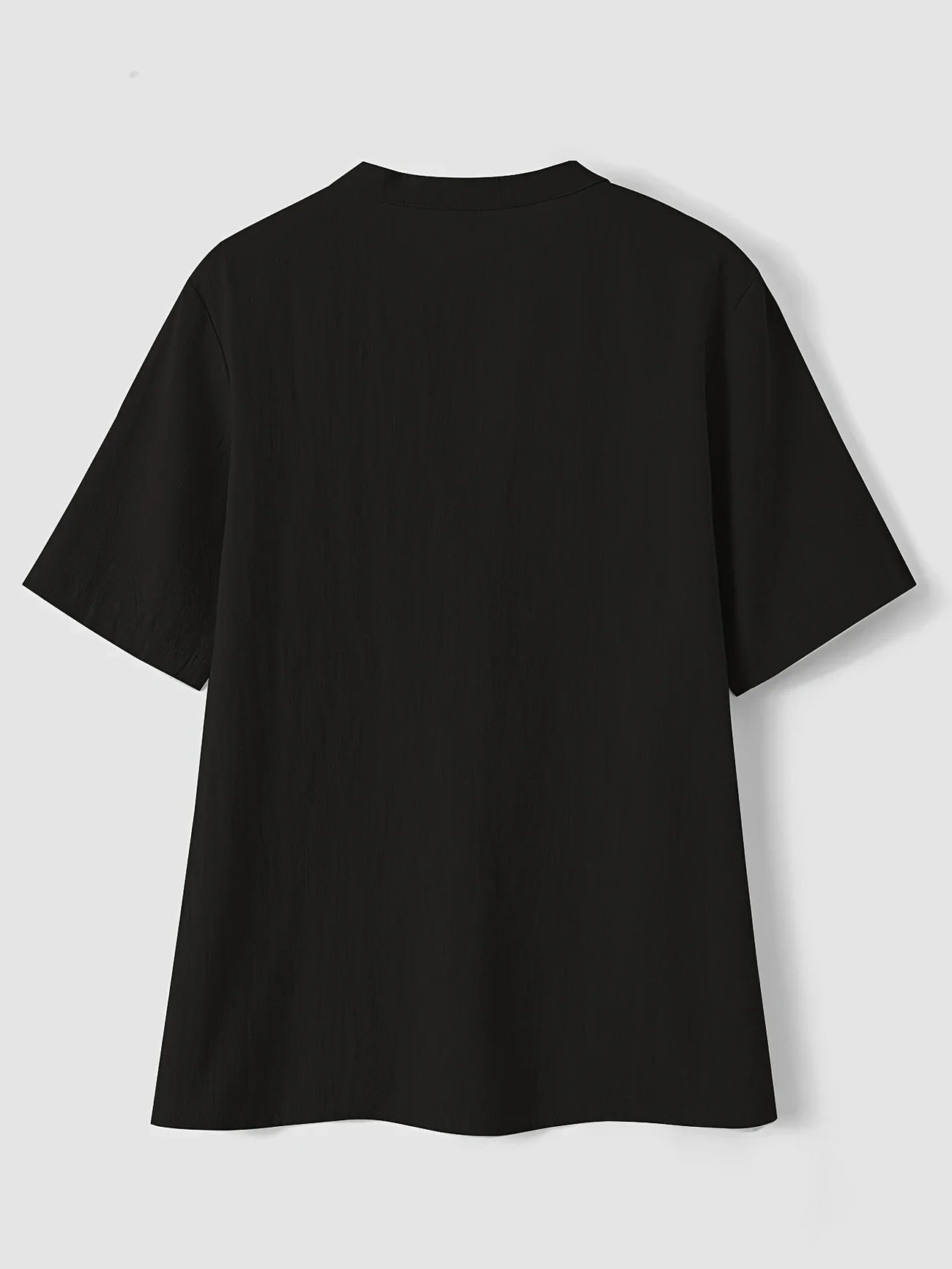 ✅Tunic-Length Hem: With a slightly longer hemline that gently curves at the back, this blouse provides excellent coverage and an easygoing silhouette. It pairs effortlessly with jeans, shorts, or tucked into skirts for a refined look.It’s ideal for those seeking a balance of comfort and style.