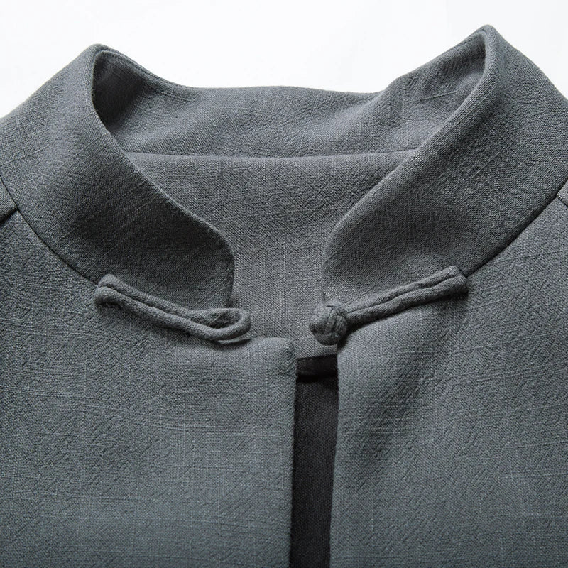 ✅Timeless and Stylish Design : The Nahim jacket features a clean and sleek silhouette with a distinctive Mandarin collar, making it a versatile piece for any wardrobe. The traditional knot fastening details add a touch of elegance, combining modern style with a classic look.