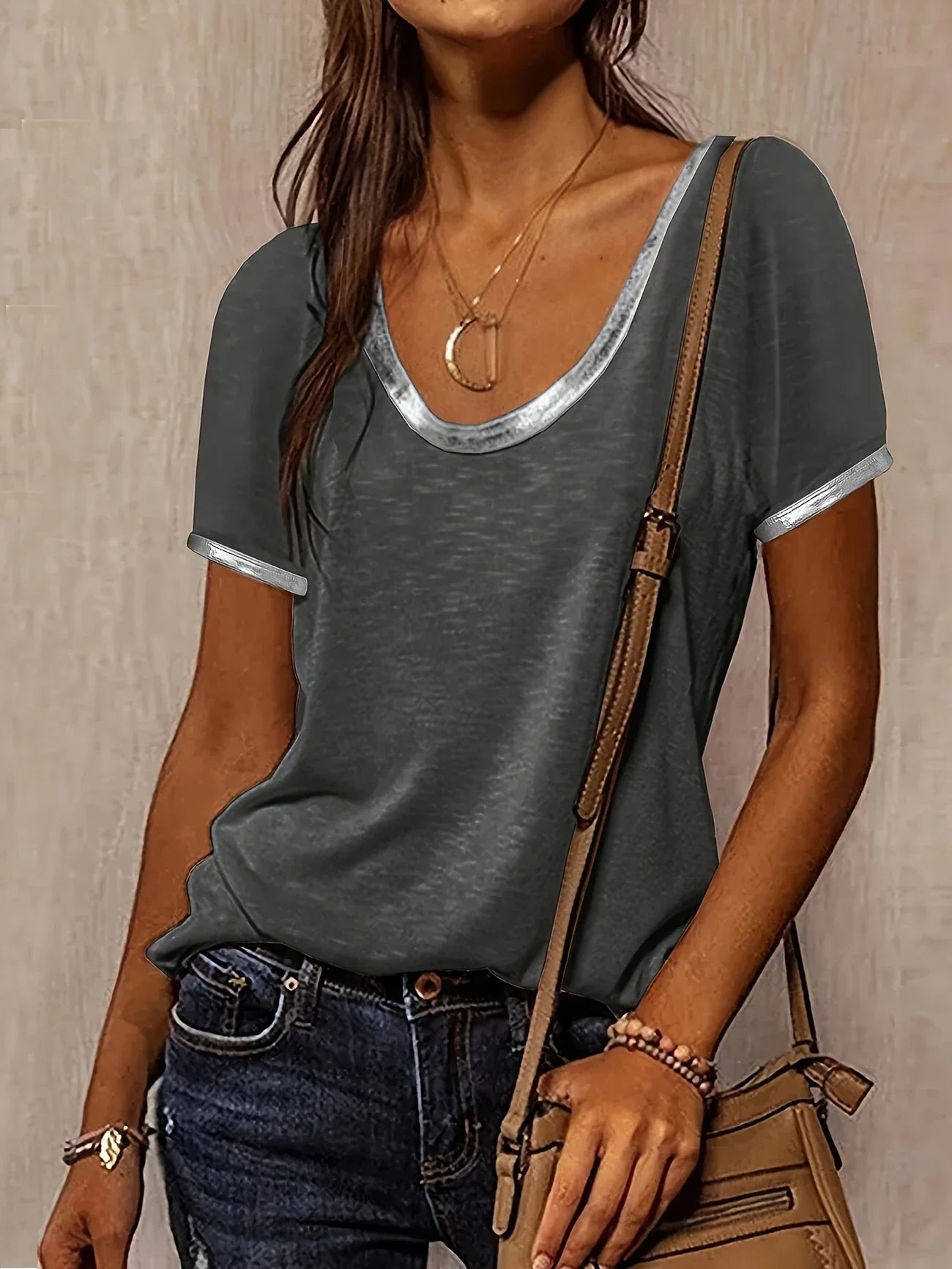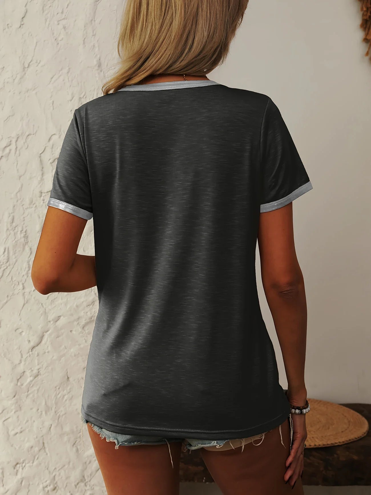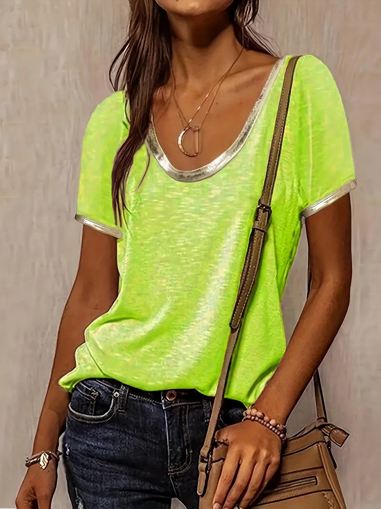✅Stylish Design: The Krissy T-shirt features a trendy crew neck and vibrant color options, making it a fashionable choice for casual outings. The unique color accents add a touch of flair, allowing you to express your personal style effortlessly. It's perfect for pairing with shorts, jeans, or skirts.