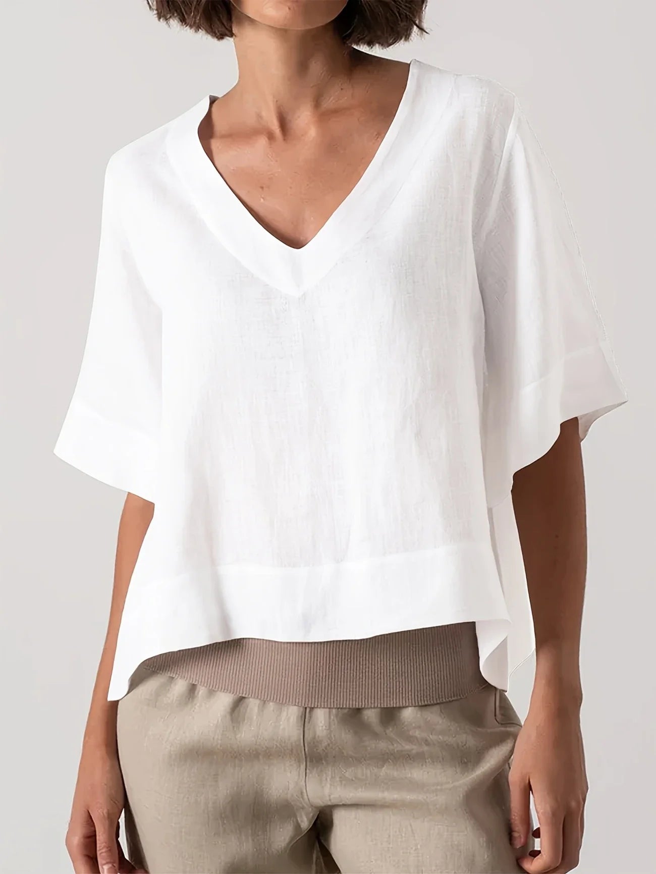 Mattea - Casual Loose Fitting Top With V Neck