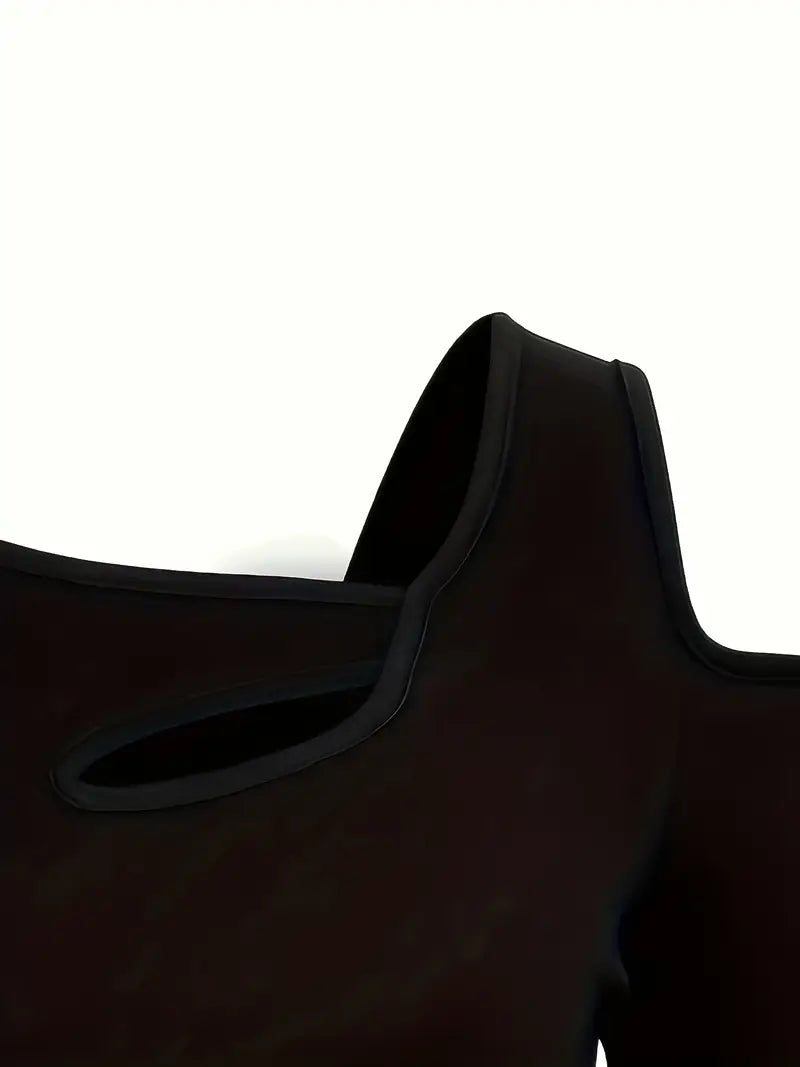 Shoulder Cutout: Features a single-shoulder cutout with added strap for a modern edge. It highlights the neckline without being too bold. The shape stays in place all day. Adds a clean break in symmetry for added appeal.