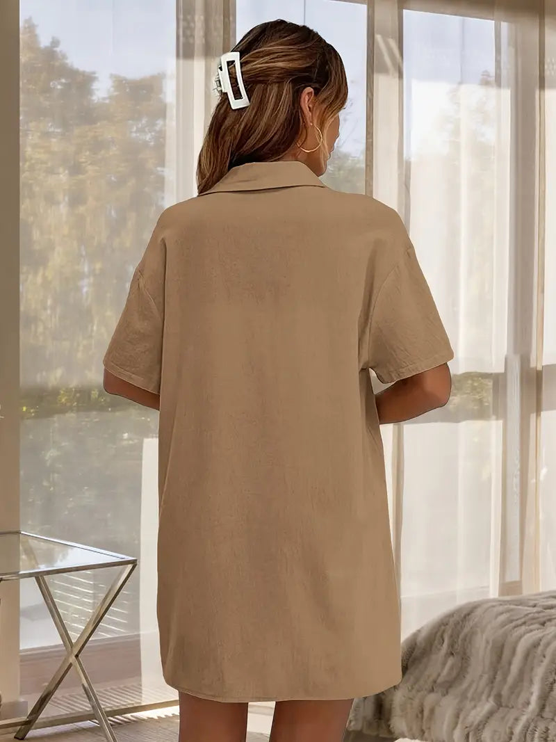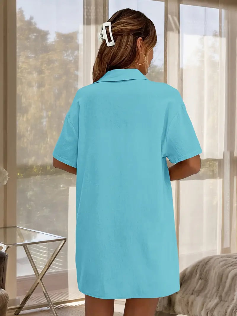 Chic Button-Up Top: The short sleeve button-up shirt adds structure while keeping things casual. Wear it open over a tank or buttoned as a stand-alone top. It layers easily for transitioning from indoors to out. The longer cut also flatters a variety of body shapes.