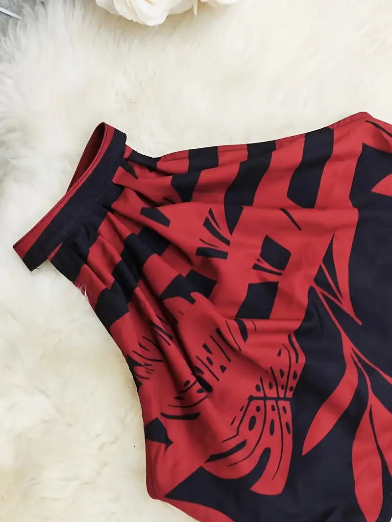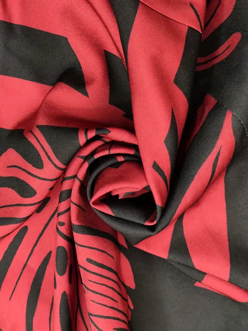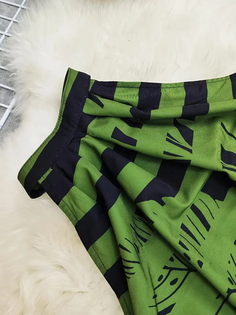 Bold and Trendy Design: The Zirina - Stylish Two Piece Set features an eye-catching tropical leaf print that makes a confident fashion statement. Its high-neck crop top and wide-leg pants combination create a flattering silhouette. Perfect for those who want to stand out while staying on-trend.